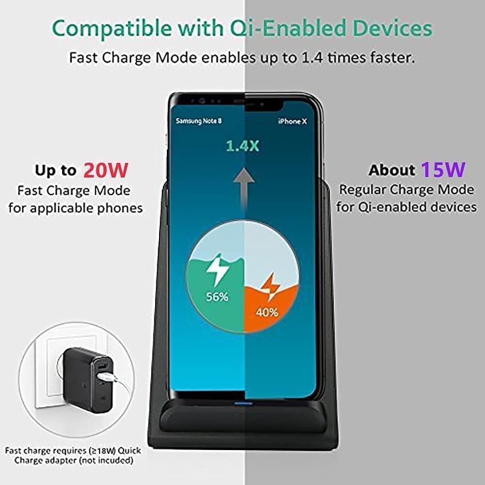 Wireless Charger 20W max Fast Wireless Charging Stand Compatible with iPhone 14 15 16 Pro Max/13 Pro/12/11/XS max/Xs/XR/8, Samsung Galaxy S24/S23/S22/S21/S20/Note 20 and More Phones (NO AC Adapter)