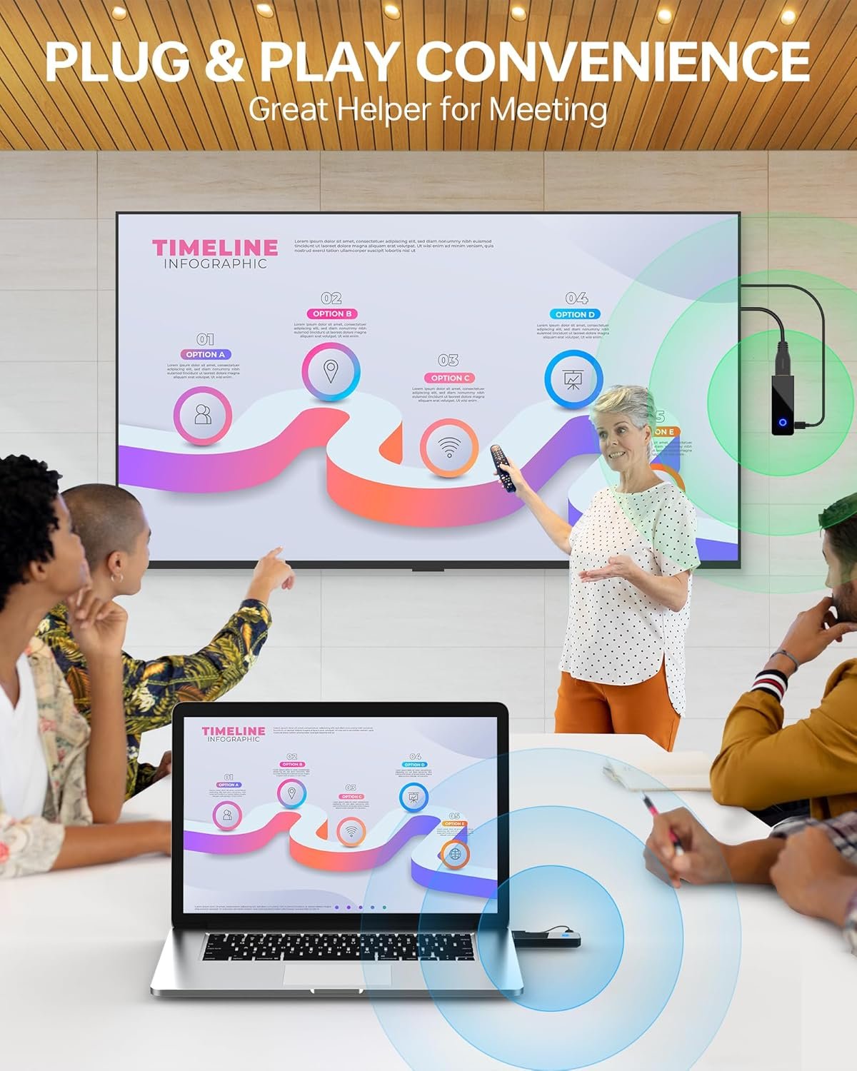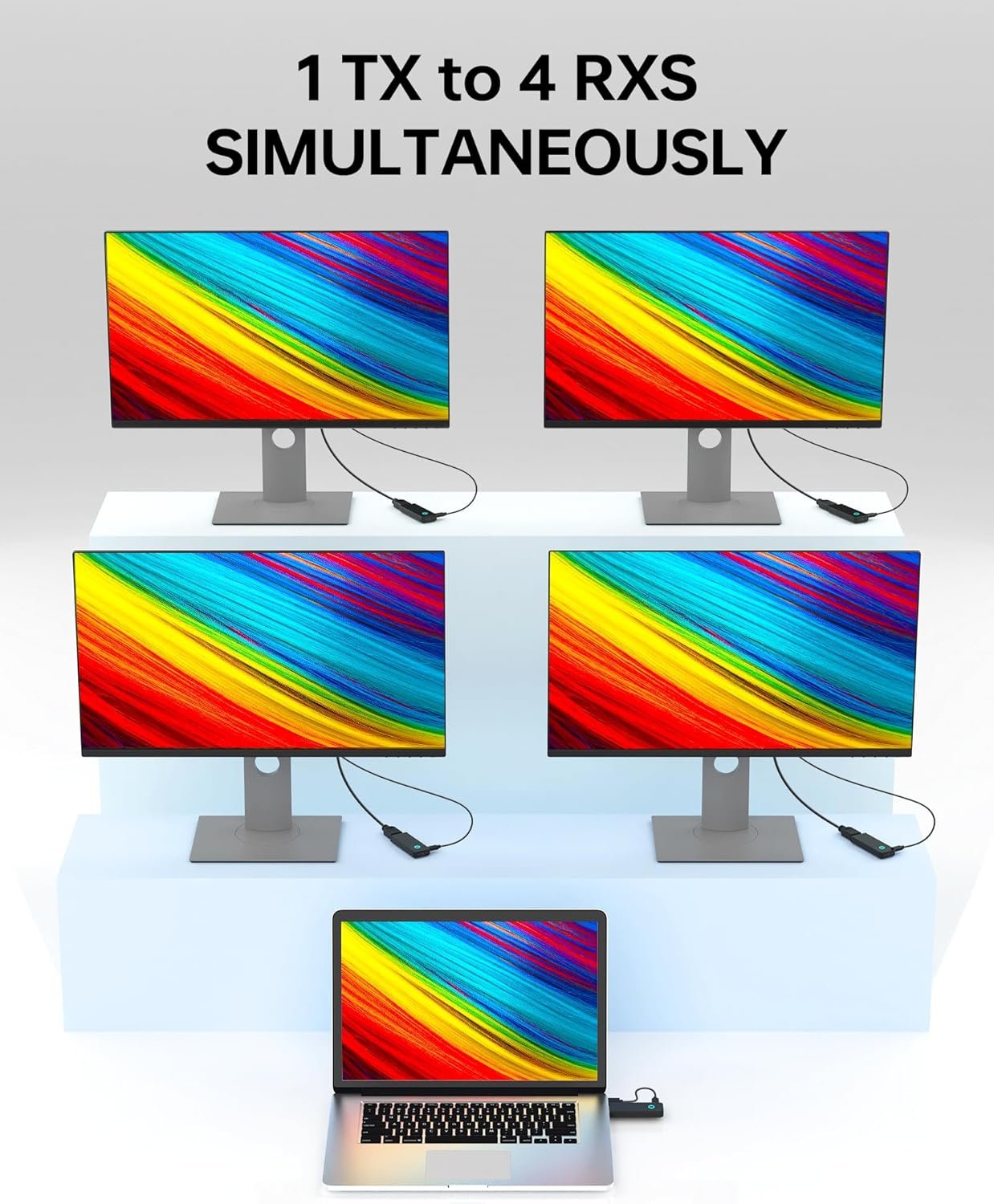 Screen Expansion and Duplication - Unleash the potential of your workspace with our wireless HDMI solution, designed to expand 1 screen or duplicate screens across multiple devices. Effortlessly project your laptop or camera's display onto HDTVs, projectors, or monitors, enhancing your productivity and entertainment experience. Wireless Transmission, Steady as a Rock - Our wireless HDMI transmitter and receiver boast a transmission range of up to 98 feet with a mere 0.1-second delay, providing an almost real-time, high-definition visual experience. Please note, for optimal performance, our device is designed to be portable and does not transmit signals through walls, supporting only one transmitter connected to four receivers in the same environment. Plug-and-Play, Effortless Convenience - Say goodbye to complex setups with our auto-pairing wireless HDMI devices, truly embodying the plug-and-play philosophy. No need for apps, Bluetooth, or Wi-Fi; enjoy high-definition audio and video anywhere, anytime, saving you time and keeping your workspace tidy and elegant. High-Definition Vision, Broad Compatibility - Our HDMI wireless transmitter and receiver support 1080P@60Hz and 1080P resolutions, ensuring a crisp and fluid audiovisual experience. We've made a conscious decision to not support interlaced scan formats like 1080i to guarantee the best picture quality. Our device is compatible with a wide array of HDMI output devices, from laptops to high-definition camcorders, Blu-ray players to projectors, and everything in between, including PS4, PS5, and various cameras. Conference Room Companion - In the realm of business meetings, our device is your indispensable ally. It provides clear imagery and sound, and with wireless connectivity, your presentations become more agile and efficient. Whether it's a remote conference or a local presentation, our device ensures seamless and precise information delivery. Visual Feast, New Home Theater Experience - Craft your personal home theater experience with our Ultra HD wireless HDMI kits, allowing you to share high-definition series, movies, and live sports with friends and family. Compatible with a multitude of apps including Netflix, Prime Video, Sky Go, and more, enriching your entertainment experience.