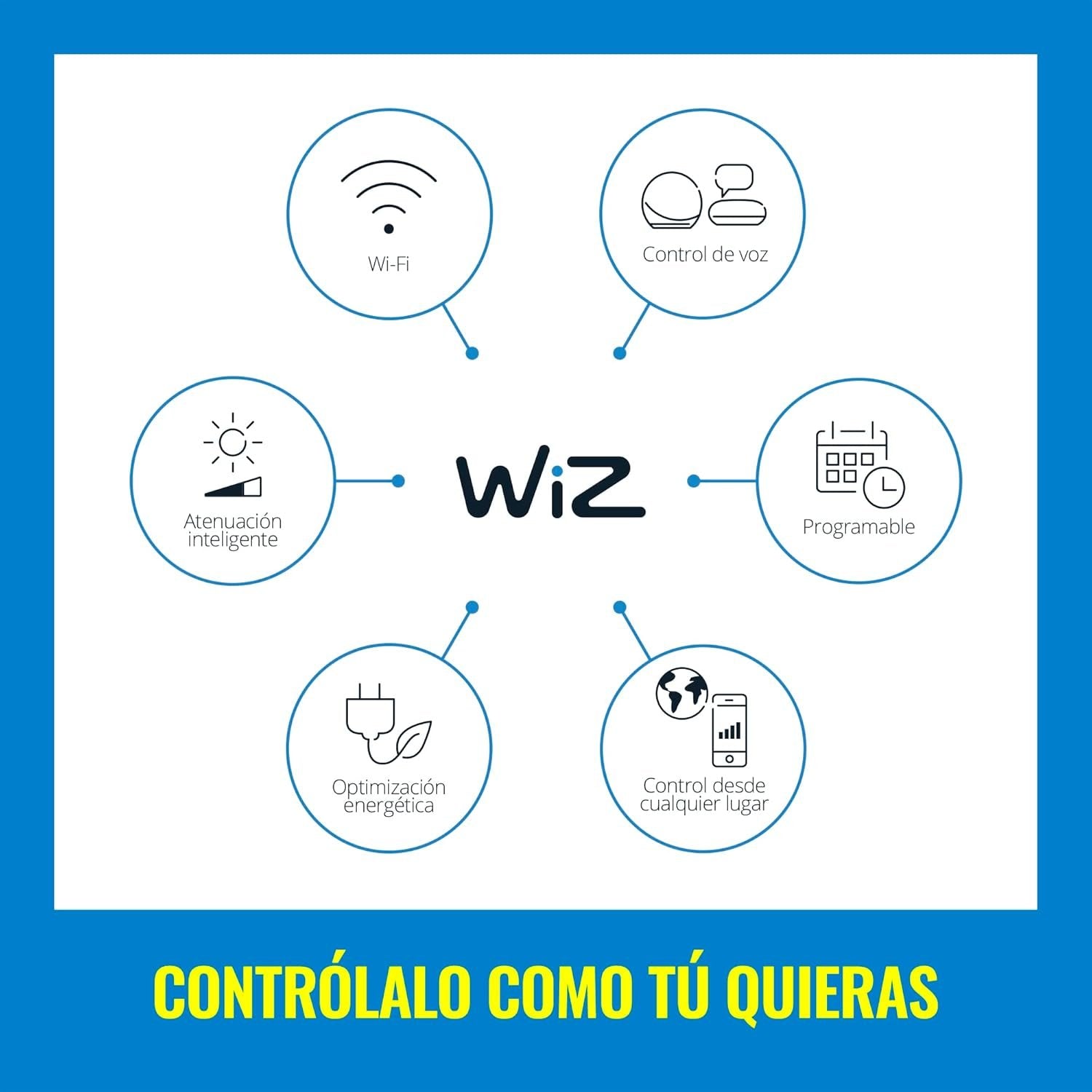ACTIVATE WITH MOTION - With a minimum of two WiZ lights in the same room at least 2m/6.56ft apart you can activate SpaceSense feature in the WiZ Connected app and lights will turn on and off automatically when they detect motion - no sensors needed! 16 MILLION COLORS - The WiZ color LED bulb offers millions of colors to help you create the perfect lighting for any moment. Once youâ€ve found a favorite mix of color save your scene and select it anytime using the WiZ Connected app or your voice. HUMAN-CENTRIC LIGHTING - This bulb also allows you to choose from different shades of warm to cool light to create the best ambience for your activities. Not sure which is right? Simply select from preset modes like Focus or Relax. EASY TO SET UP - Start enjoying the benefits of the smart features instantly. Just screw in your new bulb download the WiZ Connected app, and connect to 2.4GHz Wi-Fi! No need to install additional hardware such as a hub or gateway. EASY TO USE - Adjust lights with your smartphone voice, the WiZ remote control, or by using your existing wall switch to toggle between two favorite modes. Works with Google Home, Alexa, and Siri Shortcuts.