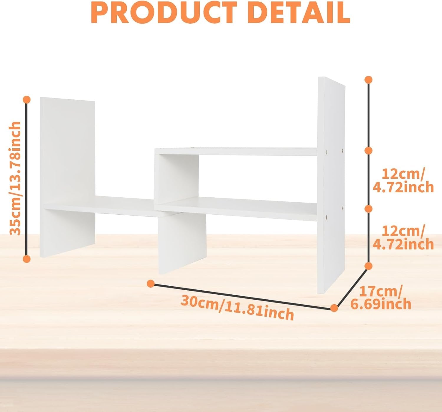 Crafted from natural wood, our desktop bookshelf is completely non-toxic, harmless, adding a touch of nature to your office or living space. Adjustable Size for Versatility: Measures 13 W (extends to 23.6 W) X 13.8 H X 6.7 D. Assembly is required but straightforward, with easy-to-follow instructions. Flexible Configuration: Consists of 2 separate pieces that can be combined into a small shelf rack, extended to hold more accessories, or angled differently to meet your specific needs. Efficient Space Saver: Ideal for decluttering your office desktop, kitchen, bathroom, or bedroom. Perfectly stores books, office supplies, spice jars, plants, and cherished keepsakes. Best Choice for Gift: Our Wood Desktop Organizer is suitable for many occasions and can also be used as a gift for your loved ones and good friends.