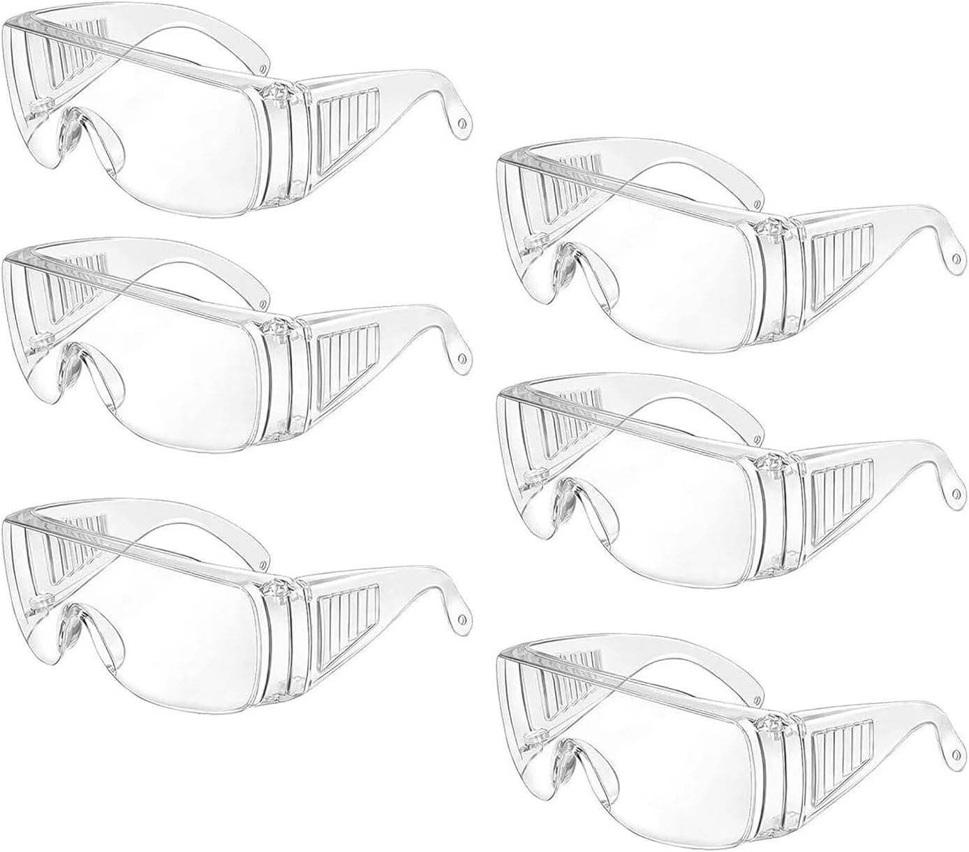 WTTUOAM 6 Pieces Clear Safety Glasses Over Glasses Goggles Anti- Fog/Scratch Eye Protective Polycarbonate Eyewear Safety Goggles for Shooting, Labs, Outdoor, Workplaces Safety Eye Protection