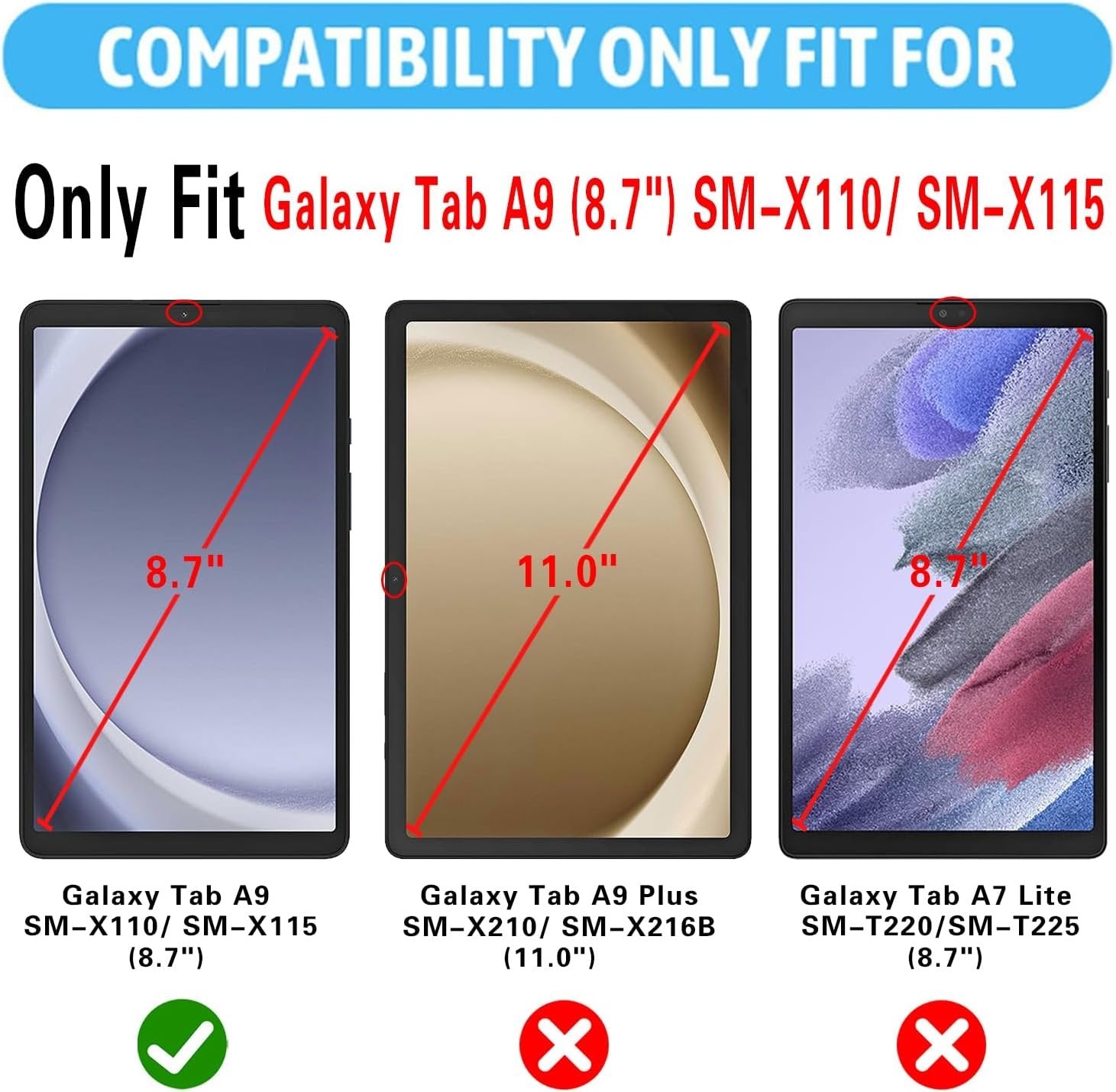 XunyLyee 2-Pack, Screen Protector for Samsung Galaxy Tab A9 8.7 inch SM-X110/ SM-115 2023 Version Tempered Glass Film