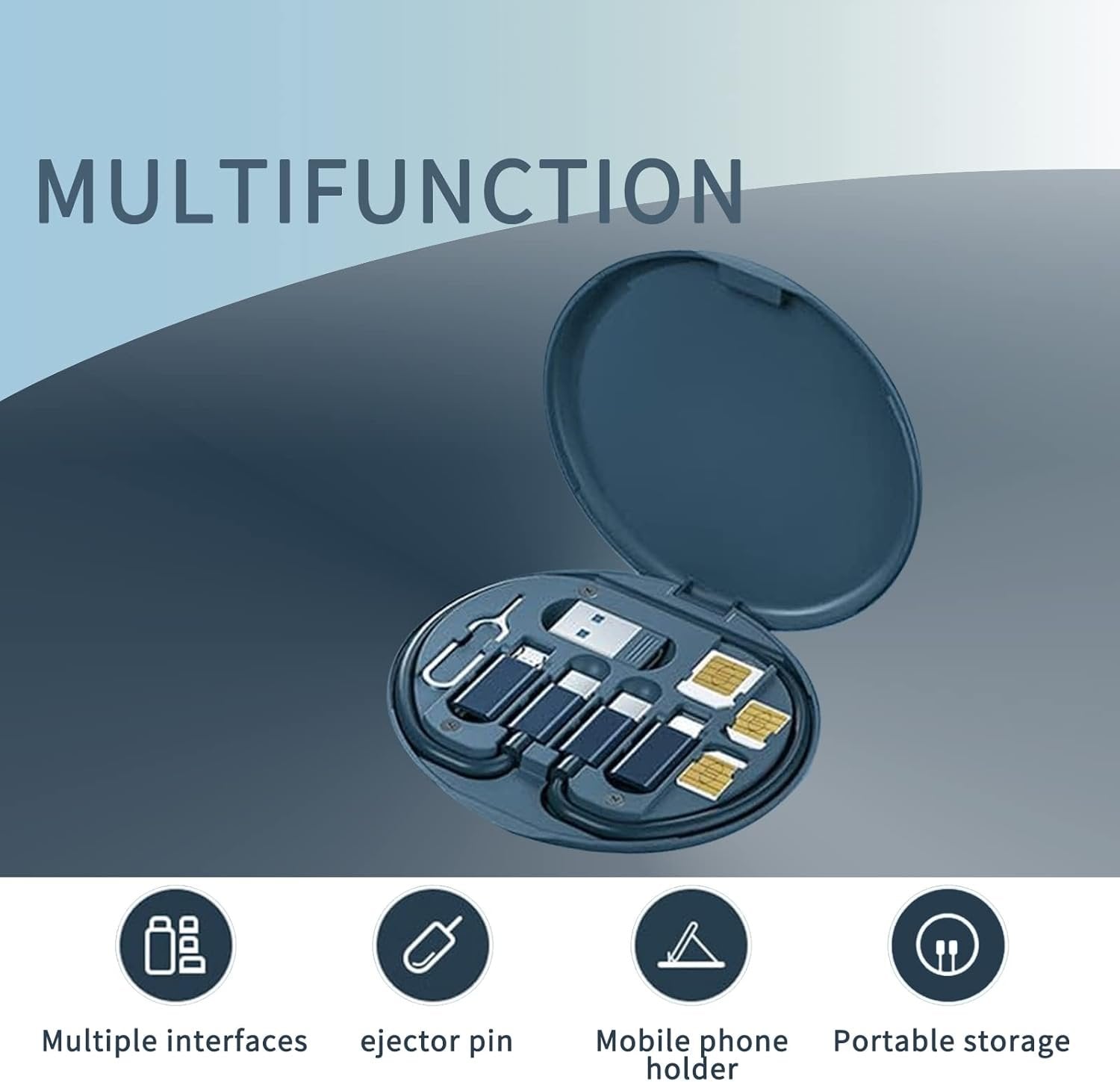 YAFIYGI 9 in 1 Cable Case USB Adapter Cable Conversion Storage Box, USB Type C to Micro USB/Lightning/USB A Cable Data Transfer Tool Contains Sim Card Slot Tray Eject Pin, Use as Phone Holder