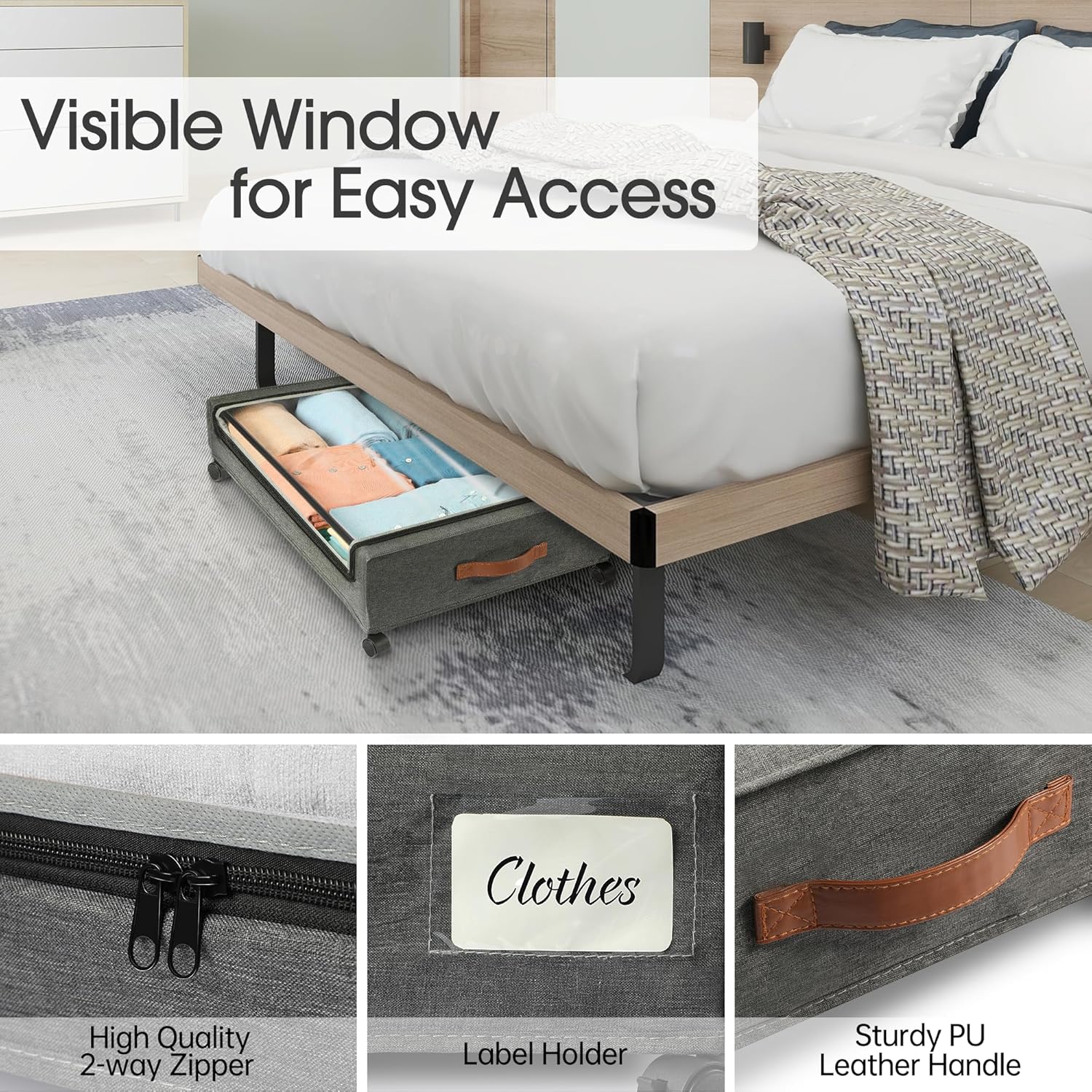 Yecaye Under Bed Storage with Wheels, 2Pack Under Bed Storage Containers, Under Bed Shoe Storage Organizer, Rolling Under Bed Metal Drawer for Clothes, Blankets(30.71 x 16.93 x 6.69 in)