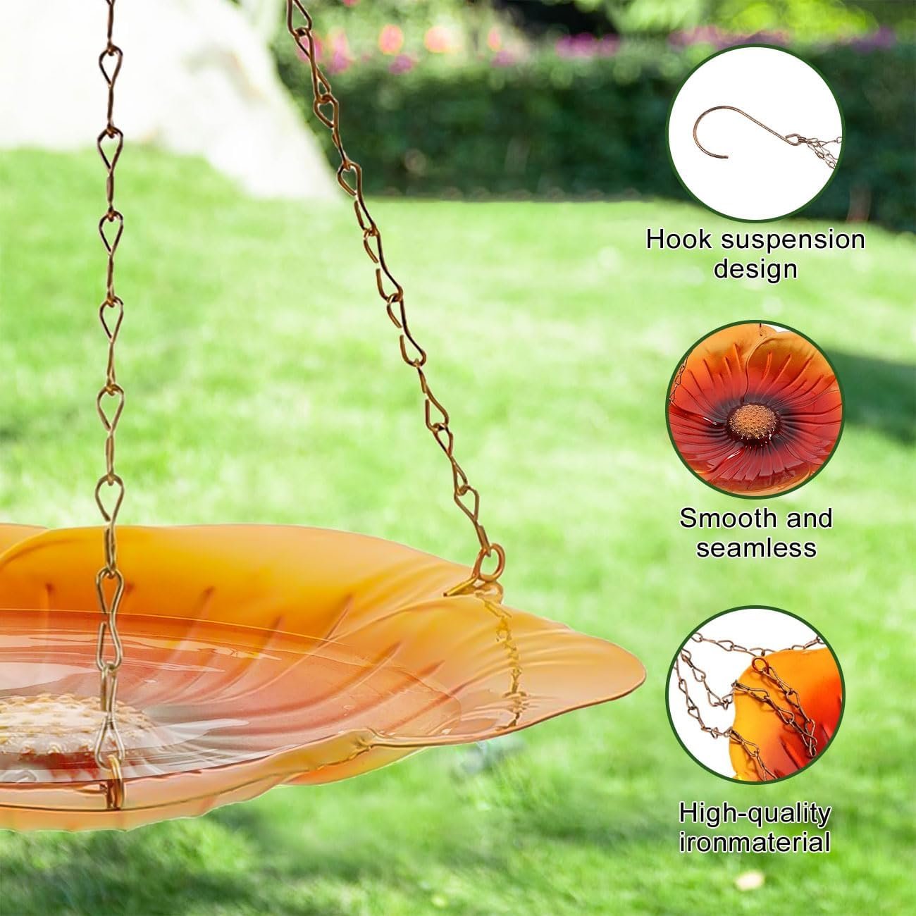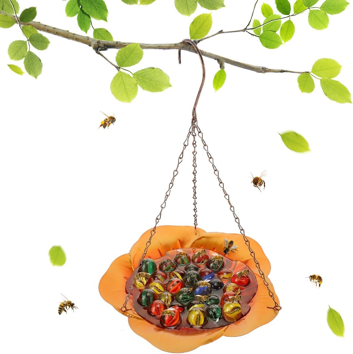 Yellow Bee Feeder with Vivid Flower Design, Anti-Rust Iron Bee Watering Station for Feeding,Colorful Butterfly Bath Bowl Bee Cups with 30 Glass Marbles for Feeding Butterfly Bath Bowl with