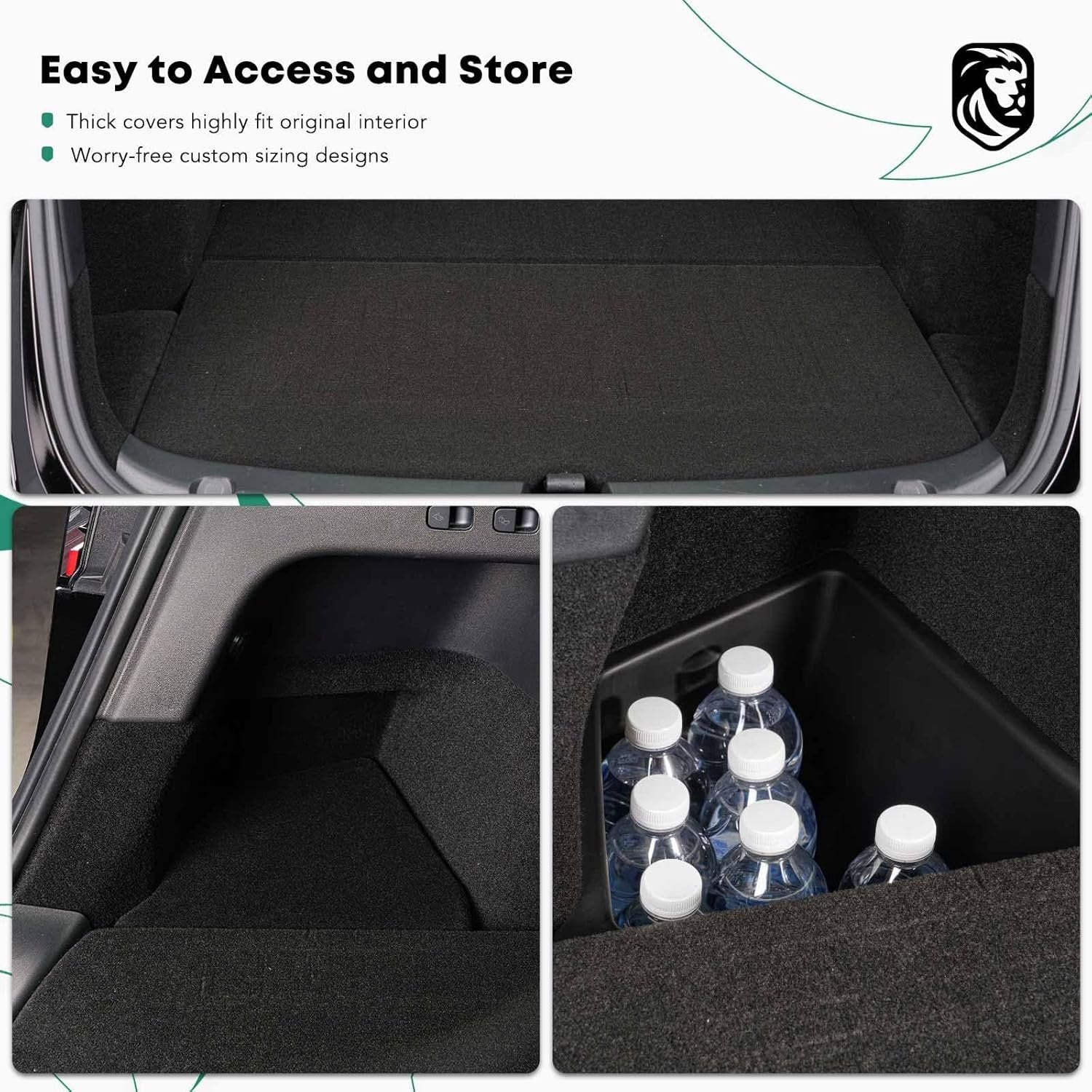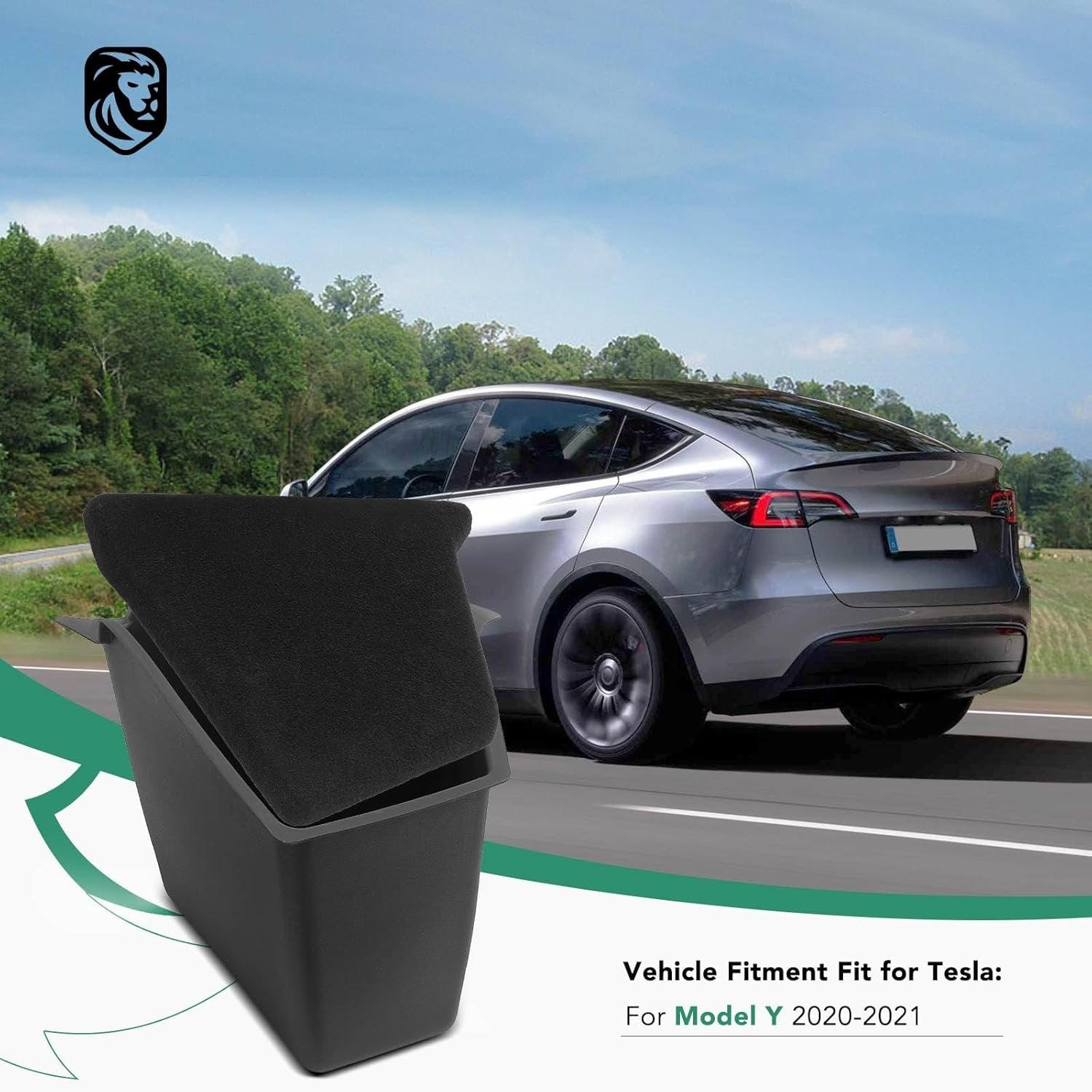Perfect Fit: Compatible with Tesla Model Y 2020 2021 2022 (For 5-Seater, Not For 7-Seater)---Professional fit design process, fitting like a glove for special cars. It comes a set of 2 Pcs. please try to change the side you put when it can't fit seamlessly Durable and Clean: Featuring supple and durable TPE+ABS material, no issue about long-term using and protecting your items from being scratched. Trunk organizer comes without unpleasant smell by temperature rising. You can remove it easily at any times and waterproof material just hose it down Aesthetic Care: Rear side car storage organizer double match your need by surface flocking design looks like original Tesla car carpet and soft interior material is anti-noise and waterproof. The seamless size design makes you hard to tell the boundary between the protector pockets and trunk Install On-the-go: Tool-free installation. Everyone can install rear trunk organizer tray in a few seconds without adhesive residue to leave. Rear trunk storage side organizer comes with drawstring design on lids for effortless installation and accessing Custom Design: Essential model y trunk storage bins for its precise radian and seamless fitment, as if it were a part of the original car. No longer have to worry about shoes, tools, gears, umbrellas garbage and other wet dirty items that may pollute the trunk interior
