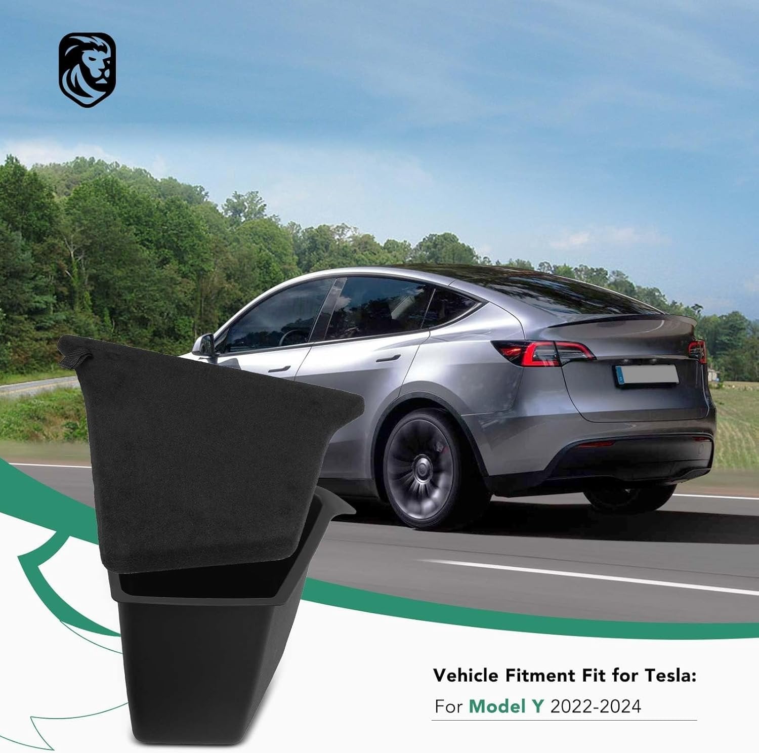 Perfect Fit: Compatible with Tesla Model Y 2022 2023 2024 (For 5-Seater, Not For 7-seat)---Professional fit design process, fitting like a glove for special cars. If it can't fit seamlessly, please try to change the side you put Durable and Clean: Featuring supple and durable TPE+ABS material, no issue about long-term using and protecting your items from being scratched. Trunk organizer comes without unpleasant smell by temperature rising. You can remove it easily at any times and waterproof material just hose it down Aesthetic Care: Rear side car storage organizer double match your need by surface flocking design looks like original Tesla car carpet and soft interior material is anti-noise and waterproof. The seamless size design makes you hard to tell the boundary between the protector pockets and trunk Install On-the-go: Tool-free installation. Everyone can install rear trunk organizer tray in a few seconds without adhesive residue to leave. Rear trunk storage side organizer comes with drawstring design on lids for effortless installation and accessing Custom Design: The intimate handle design of lid makes it easier to take and place your storage items. Essential model y trunk storage bins for its precise radian and seamless fitment, as if it were a part of the original car. No longer have to worry about shoes, tools and other wet dirty items that may pollute the trunk interior
