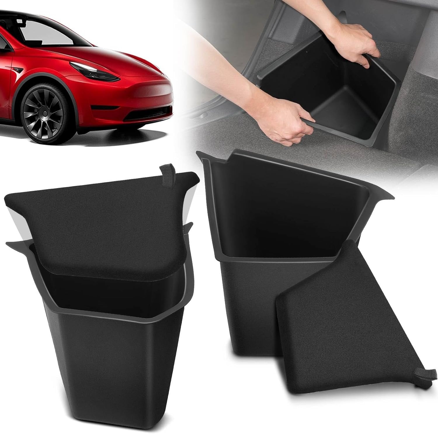 YHTAUTO 2 Pcs Trunk Side Organizer Storage Box with Lids Fit for Tesla Model Y Accessories 2022 2023 2024 Rear Trunk Storage Bins Flocking Waterproof Odorless (For 5-Seater, Not For 7-seat)