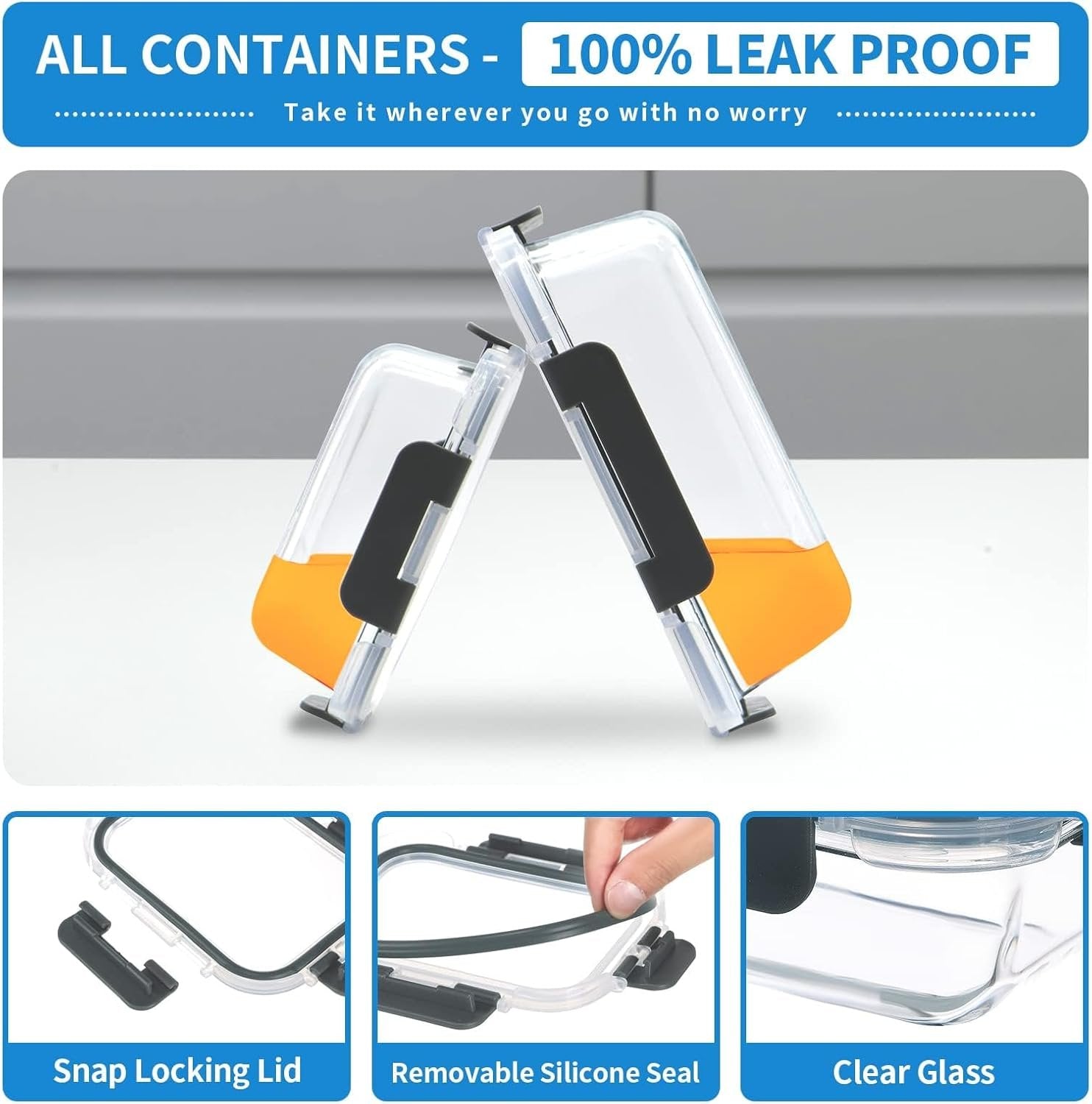 The packaging set comes with 10 (36oz*5 + 12.5oz*5) stackable containers with lids.The Food Container is very suitable for you to prepare meals at home, take to work or travel. OVEN, MICROWAVE, DISHWASHER SAFE: This food storage container is very suitable for heating food in a microwave or oven (without lid), and it can also be washed in a dishwasher (without lid).The container can withstand high temperatures and sudden cooling. SAFETY & HIGH QUALITY: The container is made of borosilicate glass (lead-free) with a plastic lid (BPA-free). The container is sealed and leak-proof to ensure that no liquid spills. GOOD DESIGN: The simple and clean design makes the containers easy to clean and looks great.These glass containers can be nested or stacked on top of each other, saving space when not in use and making room for other items. 100% CUSTOMER SATISFACTION: If you receive cracked products or you are not 100% satisfied with our products, please feel free to contact our customer service. We will give the best solution for you within 24 hours.