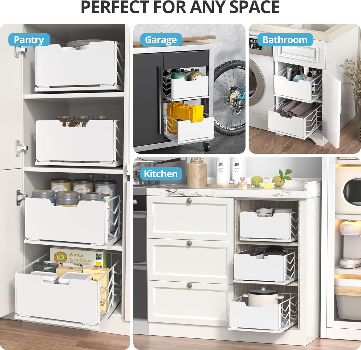 ZOINLIY Small Pull Out Organizer Basket - Smooth Sliding Cabinet Organizer, Heavy Duty Drawers Organizer for Cabinets, Slide Out Under Sink Organizer, 15.7" D x 11.8" W x 6.7" H (L - 2 Pack)