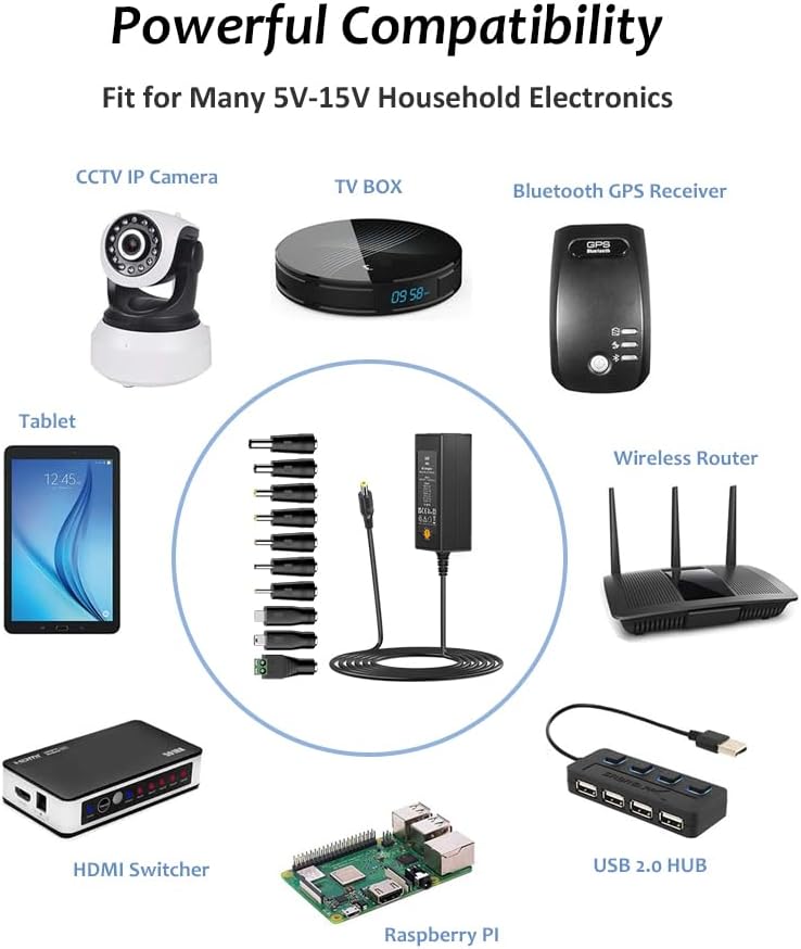 Zolt Universal AC to DC Power Adapter 5V 6V 7.5V 9V 12V 13.5V 15V 3A Slotted Power Transformer for Electronics 3000mA